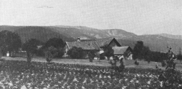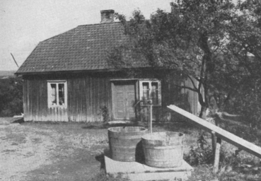 Gåserud, bnr. 1. Den gamle stuebygningen ble bygd mellom 1823 og 1861, og ble revet 1950.