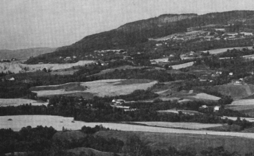 Hellumgårdene, Hårberg, Lyngås, Sand ned til venstre, Hennumgårder og Kraft opp til høyre.