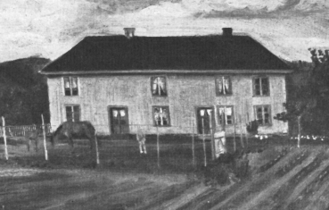 Den gamle stuebygningen på Østre Kjelstad, bygd kort etter 1804 og revet 1914. Etter maleri på Kjelstad.