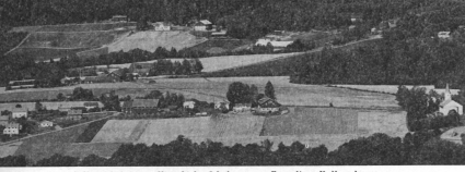 Syllinggårder og Sylling kirke. I bakgrunnen Fagerli og Kyllerud.