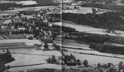 Engergårdene. Til høyre sees dt tidligere katolske kapell og Svang. I bakgrunnen Syllinggårdene med Sylling kirke og Kirkerud. I midten Sylling sentrum med Sylling skole. Til venstre Valstadgårdene.